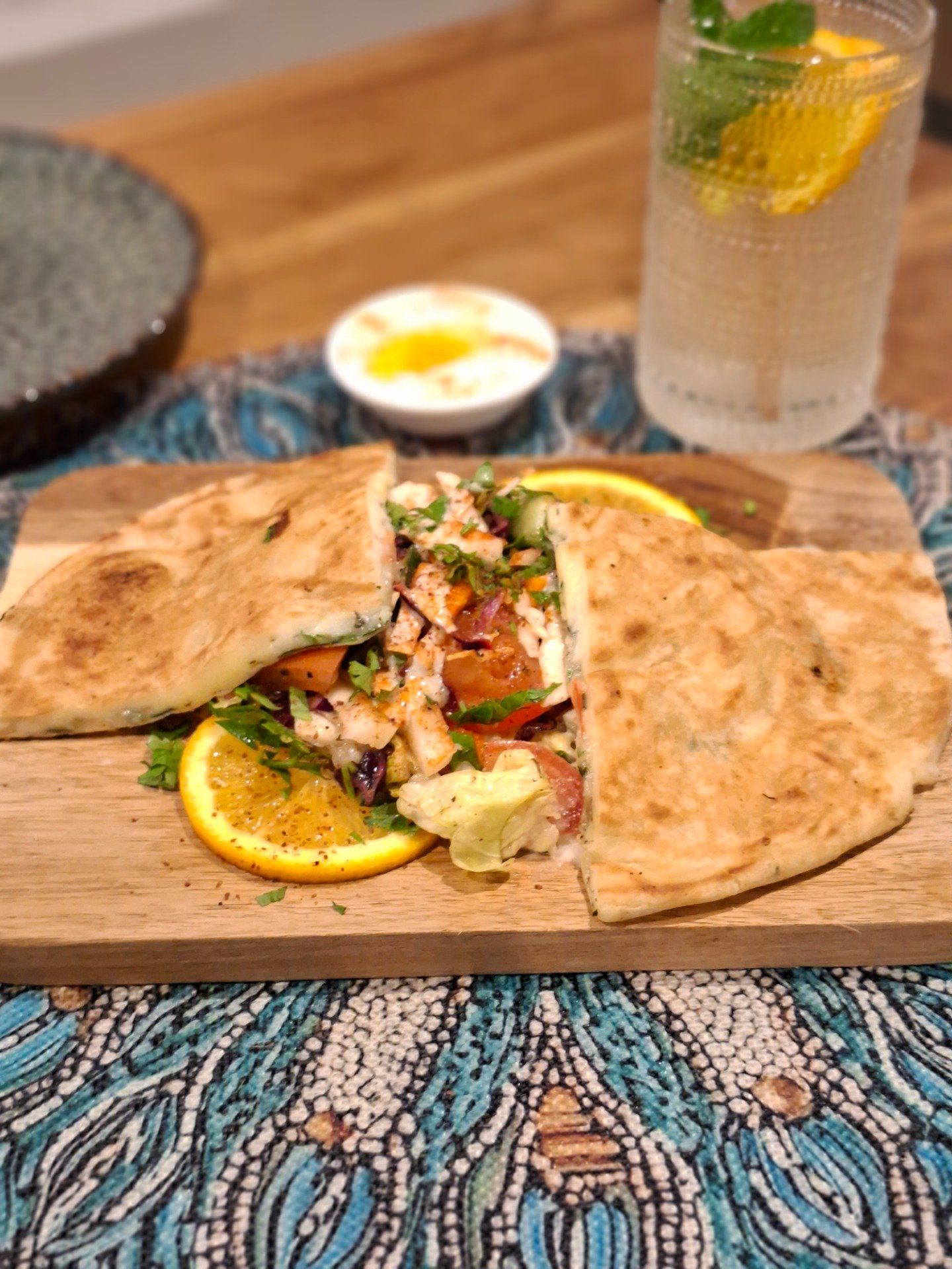 pain libanais farci au fromage et grillé avec sa salade orientale
